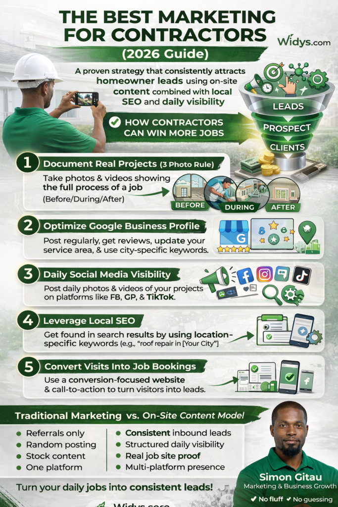 The best marketing for contractors is a combination of on-site content, local SEO, and consistent visibility across multiple platforms.